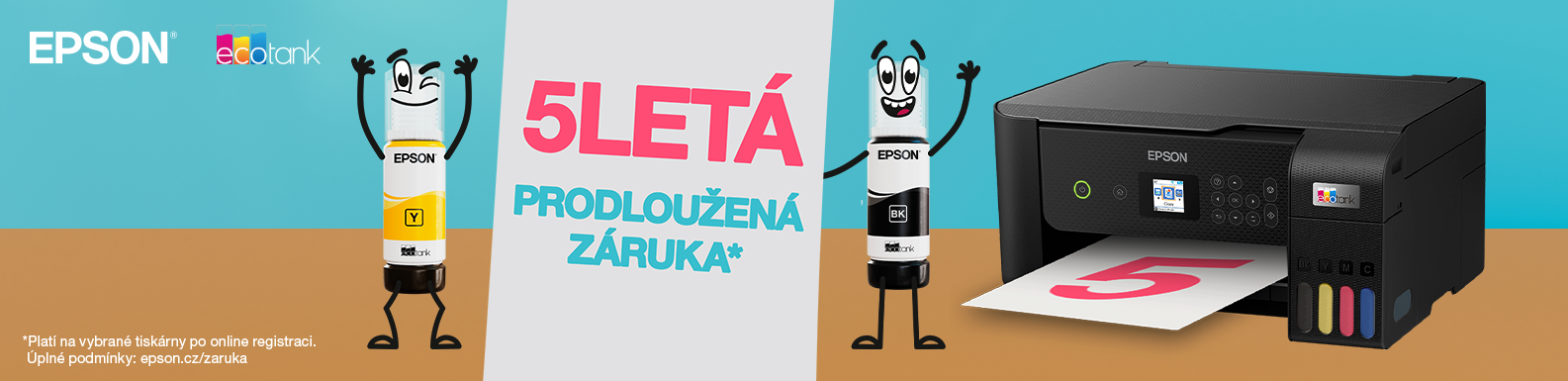 Kupte si vybranou tiskárnu Epson v období od 1.4.2025 do 31.3.2026, zaregistrujte se a získejte 5letou prodlouženou záruku Epson. Kompletní informace včetně registrace naleznete na stránce epson.cz/zaruka